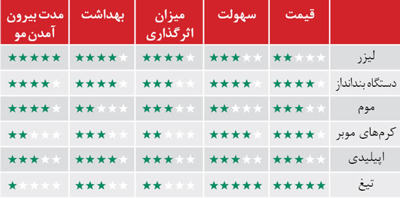 - کاهش دادن موها در قسمت های بزرگ و وسیع مانند پا و سینه و کمر